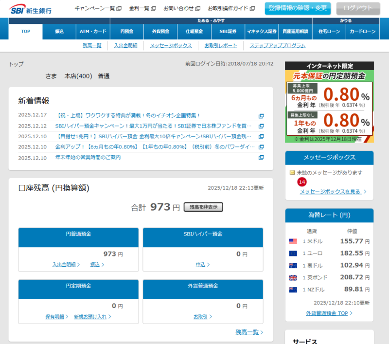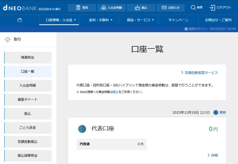 住信SBIネット銀行の方は。。。口座作ってたのか。。。まったく記憶にないのだが。。。